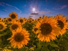 夕照の向日葵