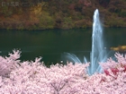 噴水と桜
